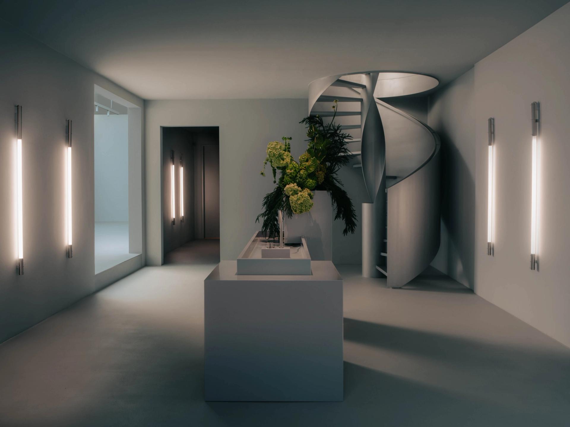 The design successfully balances the needs of a medical practice with the unique constraints of the church. The entrance is highlighted by striking LED lighting and a sculptural fountain, immersing visitors in a serene and innovative ambiance. The project creatively combines two contrasting elements—sacred architecture and futuristic design—into a cohesive space.